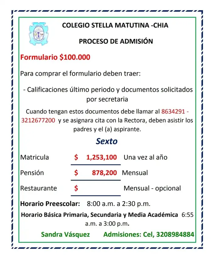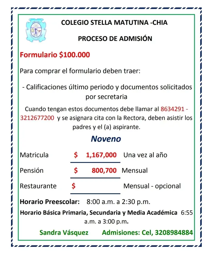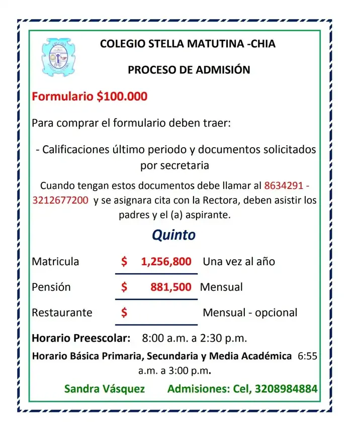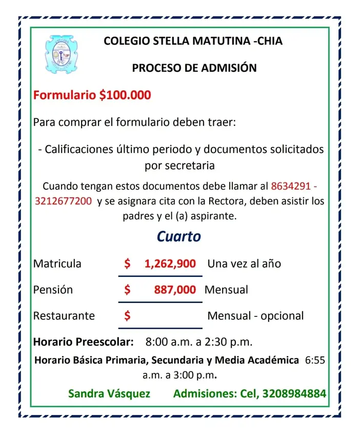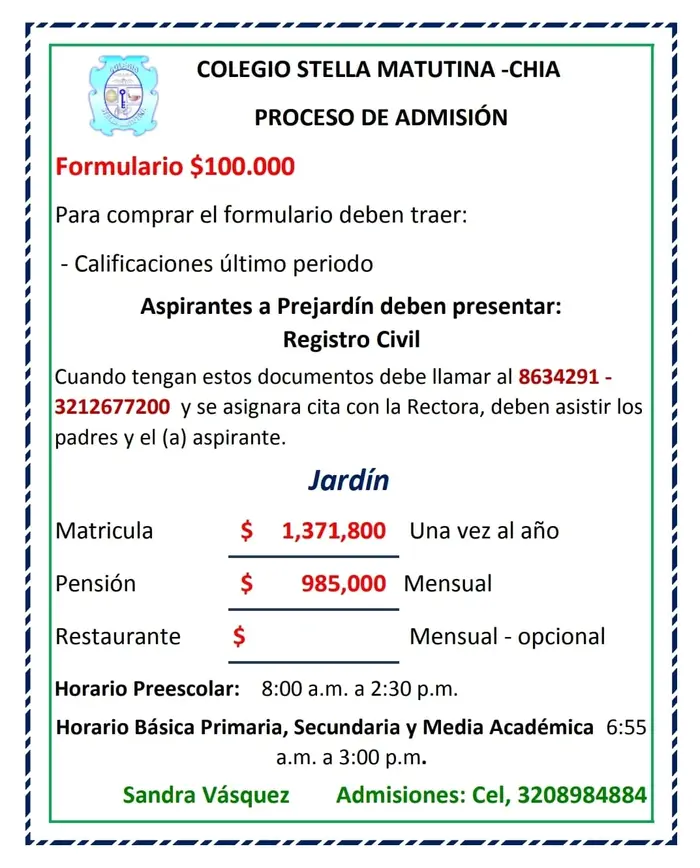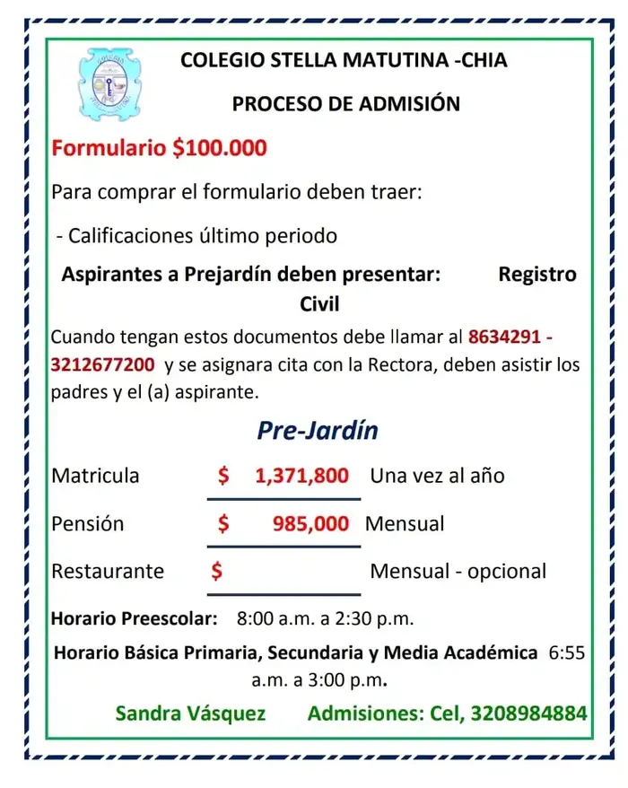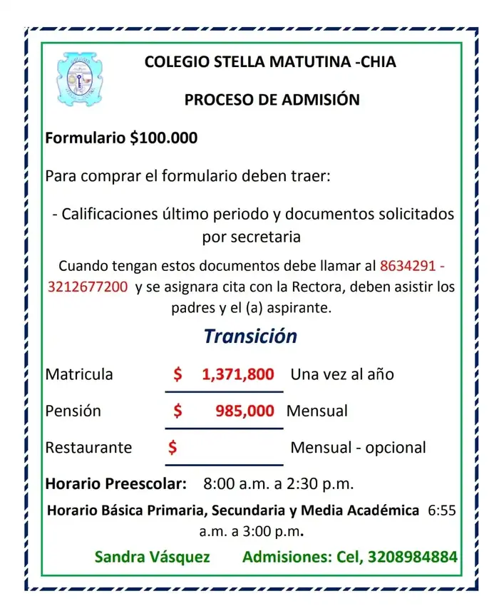 Costos Educativos 2025 PREESCOLAR GRADO PREJARDÍN GRADO JARDÍN GRADO TRANSICIÓN BÁSICA PRIMARIA GRADO PRIMERO GRADO SEGUNDO GRADO TERCERO GRADO CUARTO GRADO QUINTO BÁSICA SECUNDARIA SEXTO SÉPTIMO OCTAVO NOVENO MEDIA ACADÉMICA DÉCIMO UNDÉCIMO